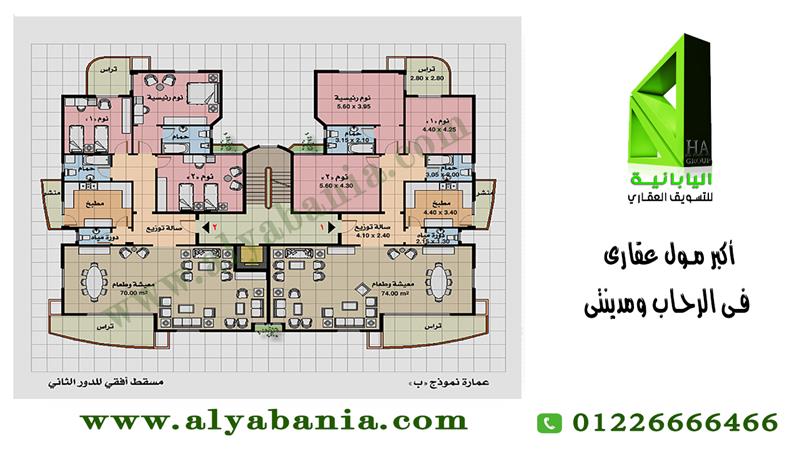 شقة فى مدينة الرحاب بمساحة كلية 238 م2 بالطابق الثالث - المرحلة الرابعة - Phase 4 نموذج ب بحرى تطل على شارع رئيسى - حديقه - عبارة عن 3 غرف نوم 3 حمام تشطيب شركه للايجار قانون جديد كود 39671