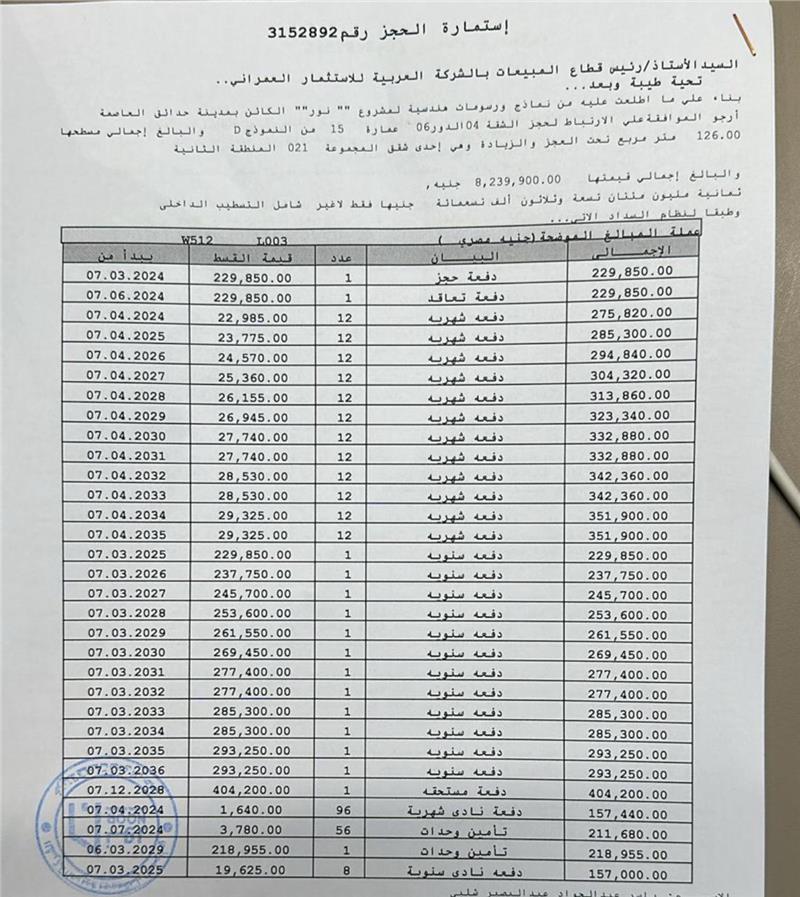 اجمالى العقد : 8239000